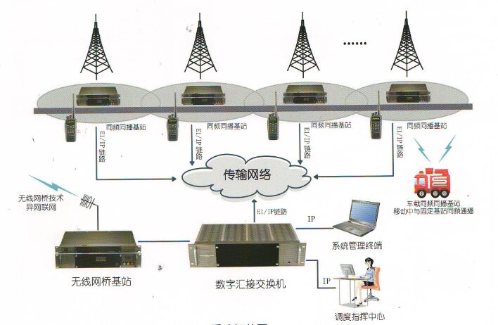 3、系统支持E1/IP有限链路或数字无线链路的多元化组网方式;